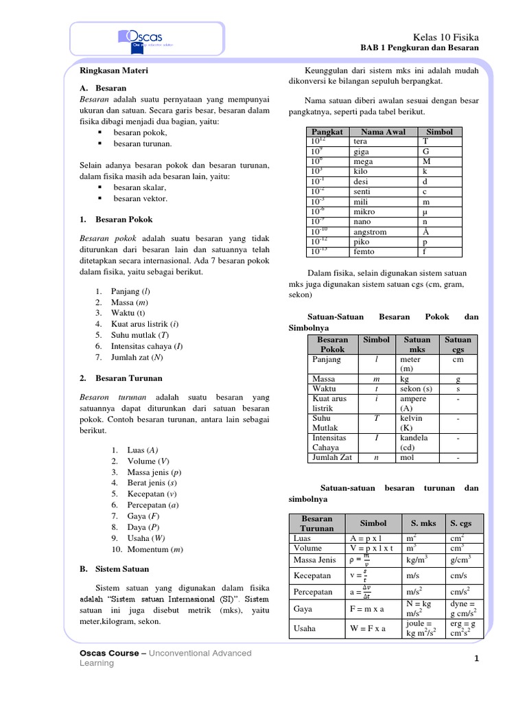 Driil Persiapan Usbn Smk Fisika Itu Mudah 2 Disajikan Berbagai Besaran Satuan Dari Besaran Pokok Pdf Document