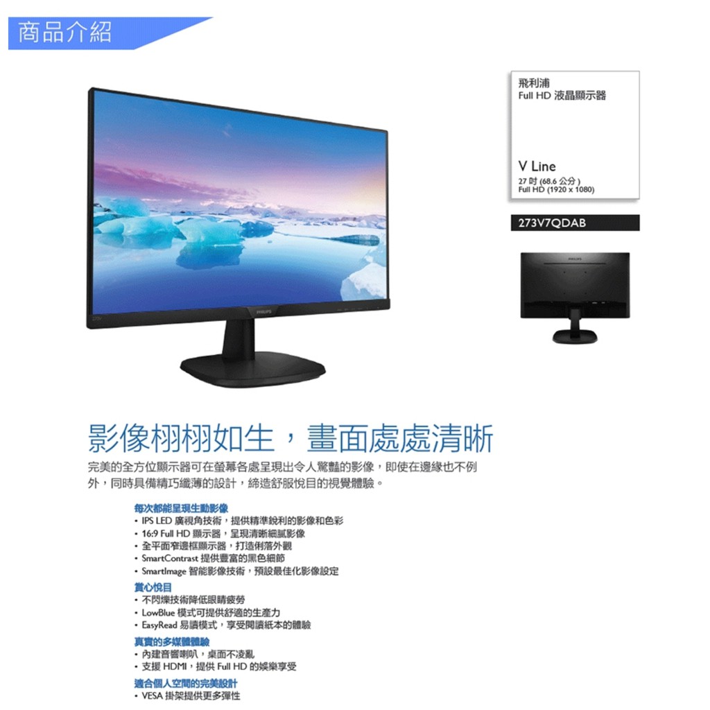 Philips 27 273v7qdab 16 9 1920 X 1080 Full Hd Led Ips Monitor Hktvmall Online Shopping