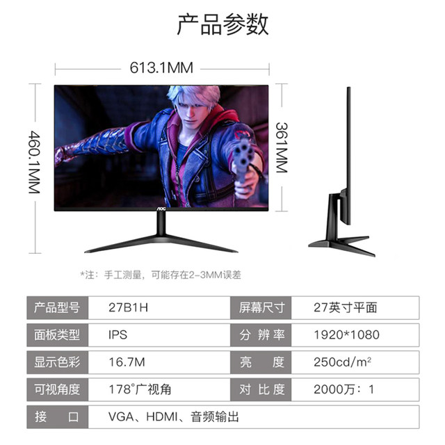 Aoc Crown Jie 27b1h Gaming Monitor 27 Inch Face Computer Display External Notebook Ps4 Screen