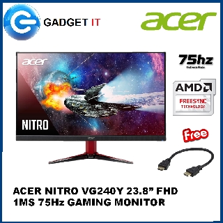 Acer Nitro Vg240y Freesync Ips 23 8 1ms Vrb Fhd 75hz Gaming Monitor Shopee Malaysia