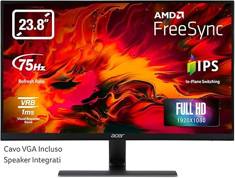 Acer Nitro Vg240y Pbiip 23 8 Inches Full Hd 1920 X 1080 Ips Gaming Monitor 144hz 1ms 3550 Egp
