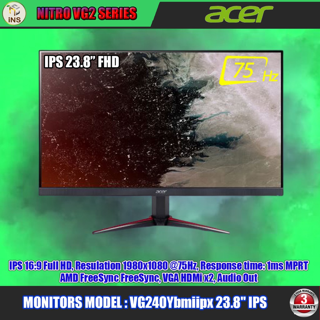 Acer Nitro Vg240ybmiix 23 8 Inch Fhd Gaming Monitor Black Ips Panel Freesync 1ms Zeroframe Hdmi Vga Black Red Amazon Co Uk Computers Accessories
