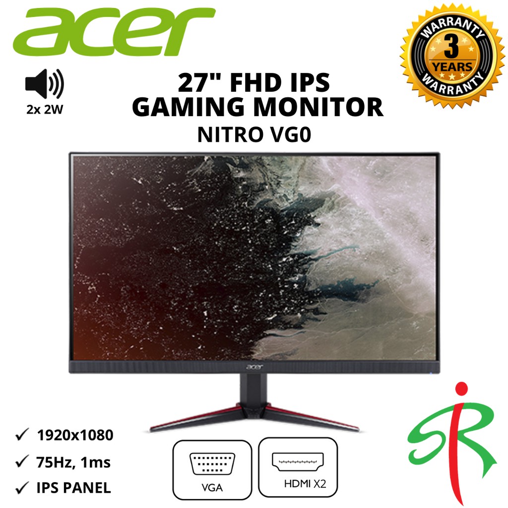Monitor Acer Gaming Nitro Flat 27 Vg270 Bmiix Ips Fhd 1ms Vga Hdmi Spk Vesa Fs 75hz Vg270bmiix Electronics Computer Parts Accessories On Carousell
