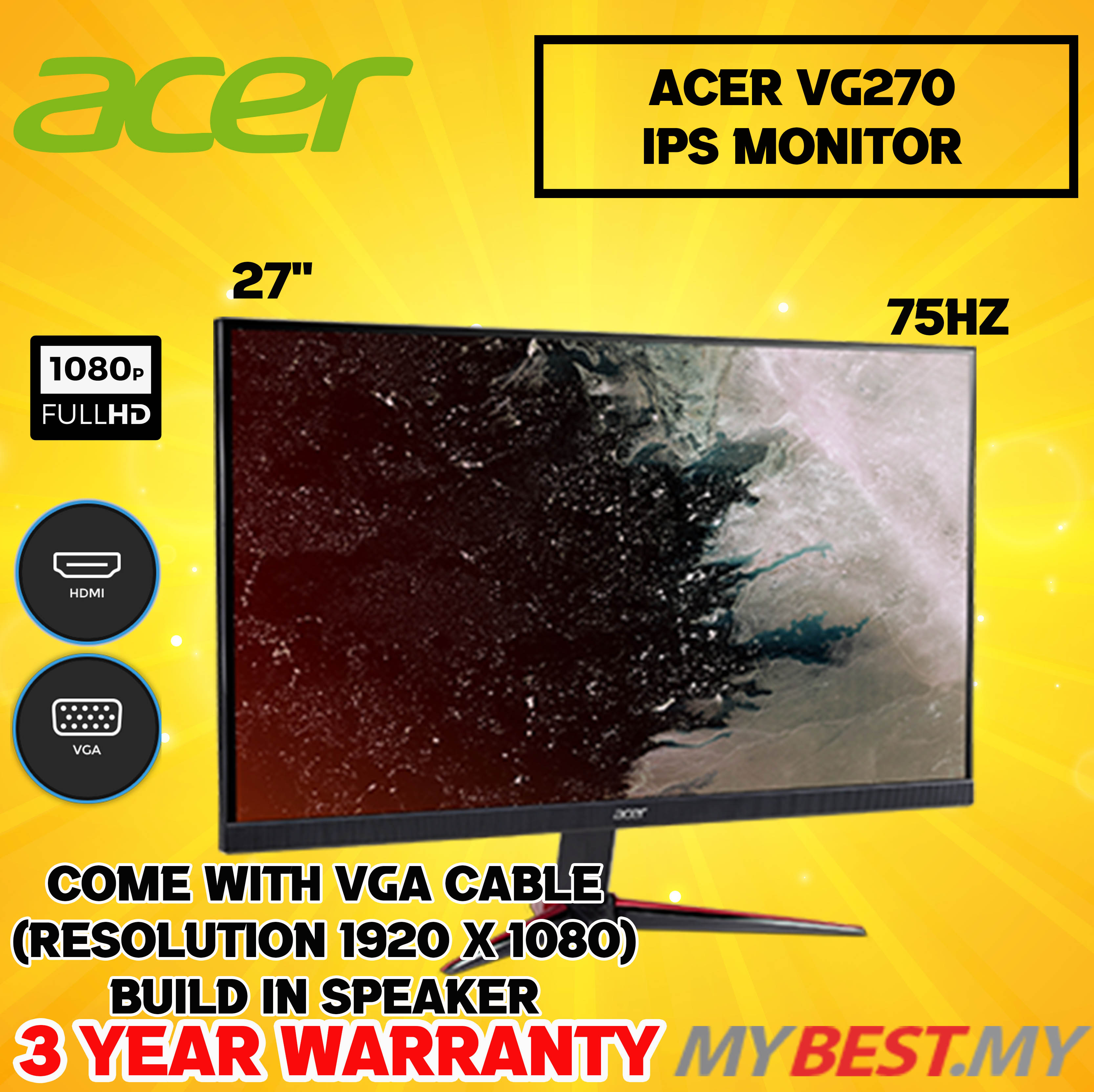 Acer 27 Ips Nitro Vg270 Gaming Monitor Radeon Freesync 75hz 1ms With Speaker Shopee Malaysia