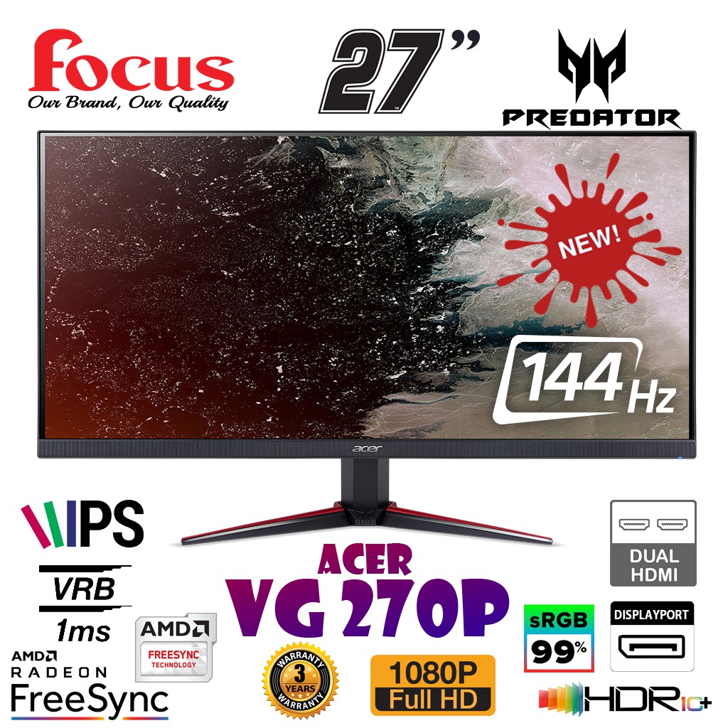 Acer Nitro Vg270 Pbiip 27 Gaming Monitor 144hz Frequency 1ms Respons Time Ips Panel Hdr10 Full Hd 1920 X 1080p 2 X Hdmi Port 1 X Display Port Sku Um Hv0ss Dfe Store