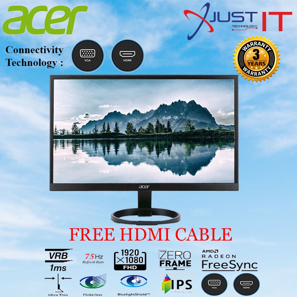 Acer R Series R240hy Black 23 8 Ips 4ms Gtg Widescreen Led Lcd 1920 X 1080 Fhd Slim Frameless And Eco Friendly Design Built In Speaker Hdmi And Usb Type C Newegg Com