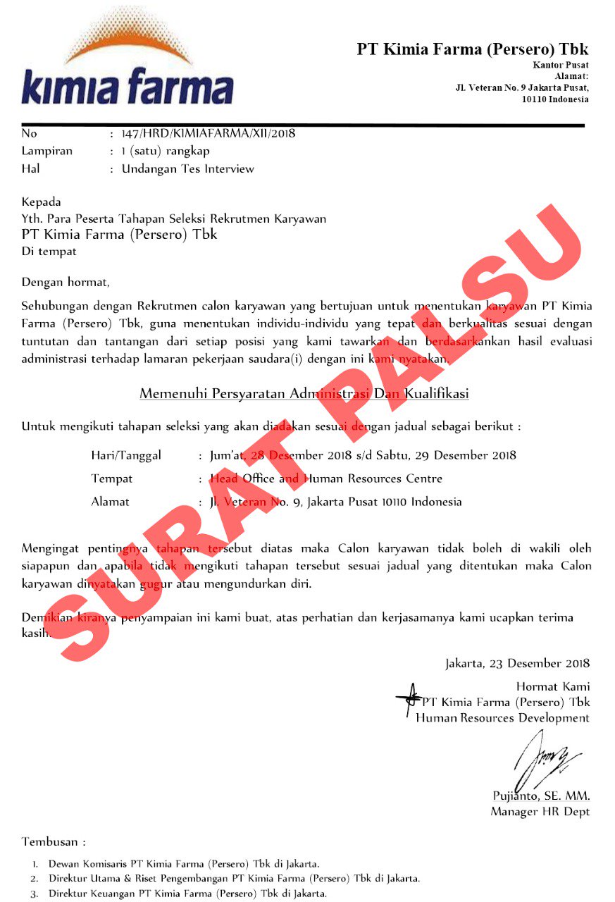 Uzivatel Kimia Farma Na Twitteru Harap Berhati Hati Atas Beredarnya Surat Rekrutmen Palsu Yang Mengatasnamakan Pt Kimia Farma Persero Tbk Kimia Farma Tidak Pernah Memungut Biaya Apapun Untuk Proses Rekrutmen Kimiafarmacare Https T Co Ihb4vjvhrg