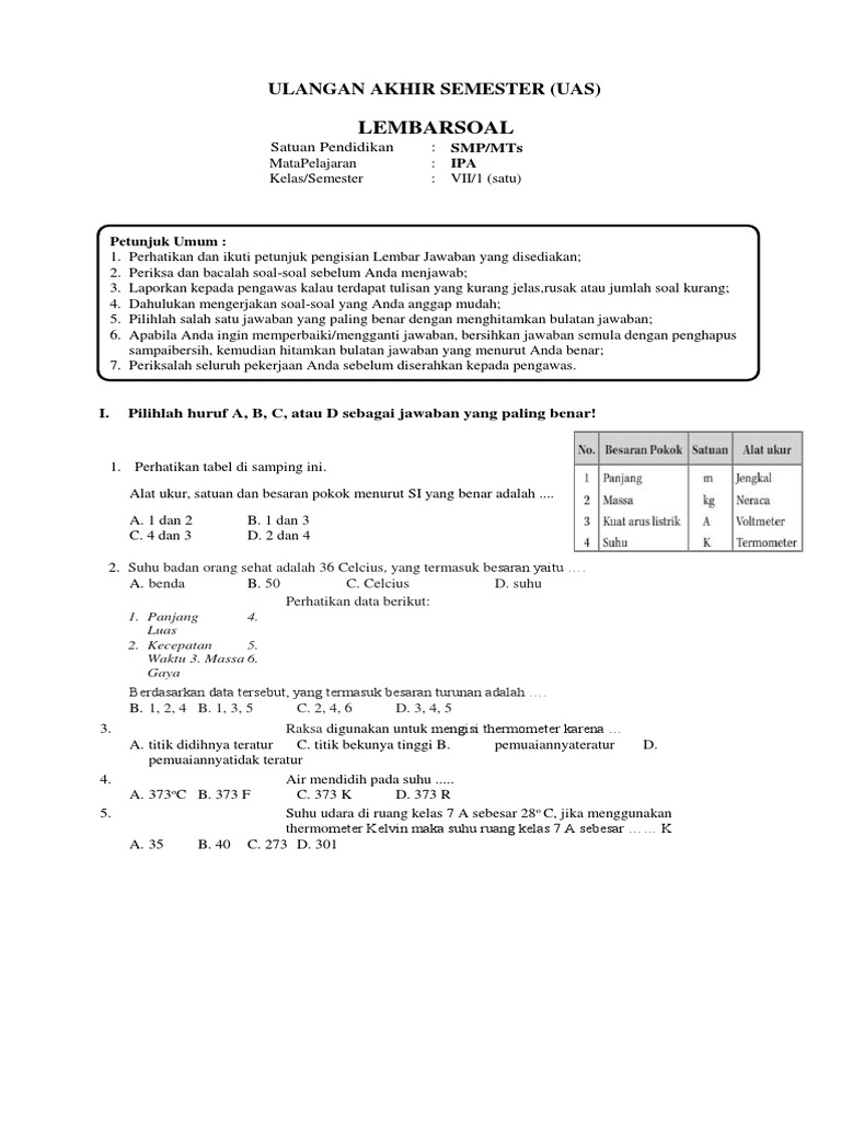Alat ukur dan satuan besaran pokok menurut si yang benar adalah nomor. Berdasarkan kesepakatan internasional maka ditetapkanlah tujuh besaran pokok sebagai dasar besaran pokok dan merupakan dasar bagi sistem satuan internasional yang biasa disingkat si. Panjang massa waktu kuat arus listrik suhu intensitas cahaya dan jumlah zat. Termasuk besaran pokok yang satuan si nya adalah meter m.