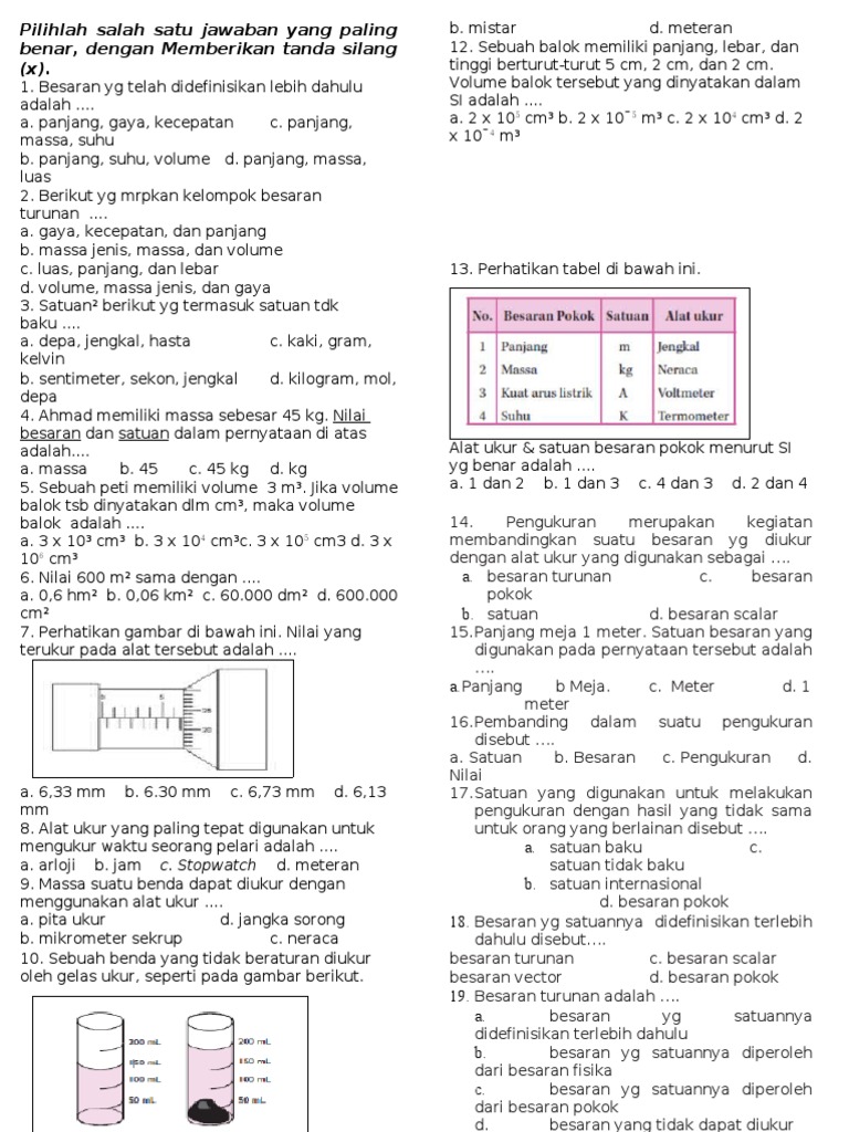 Perhatikan Tabel Besaran Dan Satuan Berikut Besaran Pokok Alat Ukur Dan Satuan Menurut Si Yang Brainly Co Id
