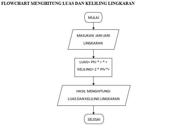 Namun untuk dapat membuat sebuah algoritma flowchart kamu diharuskan telah memahami bentuk simbol dan fungsi dari flowchart untuk membuat suatu proses penyelesaian masalah. Nah pembahasan kali ini kita akan mempelajari pembuatan algoritma menghitung luas lingkaran segitiga dan persegi panjang. Algoritma menghitung luas dan keliling lingkaran c penulis agung febriyanto.