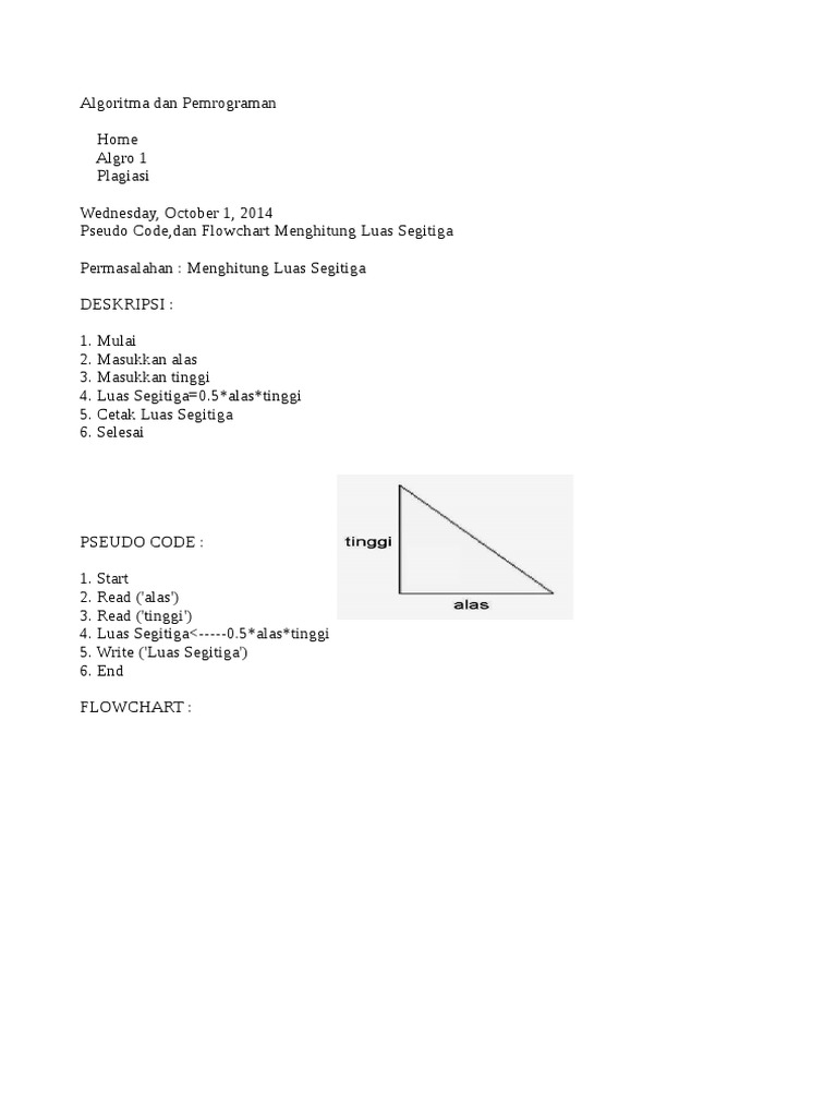Buatlah Algoritma Dan Flowchart Untuk Menghitung Luas Dan Keliling Segitiga Brainly Co Id