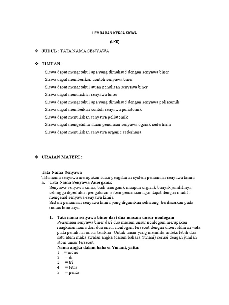 Tatanama Senyawa Dan Persamaan Reaksi Sederhana Pembelajaran Kimia