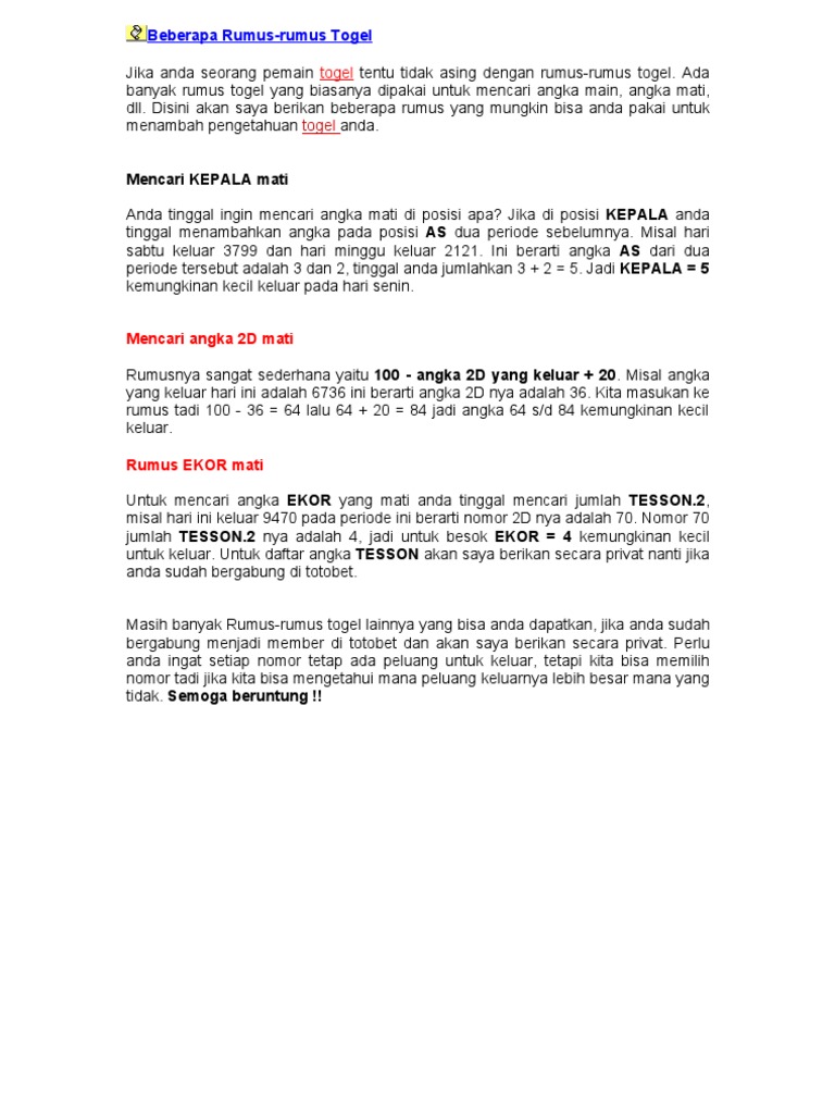 Tembus 99 Persen Rumus Togel Jitu Terbaik Togelhariini Ga