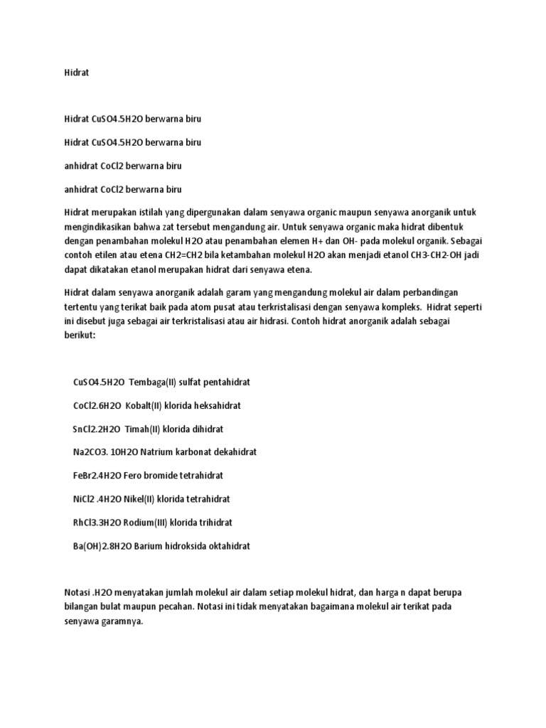 Pengertian Hidrat Dalam Ilmu Kimia Sains Kimia