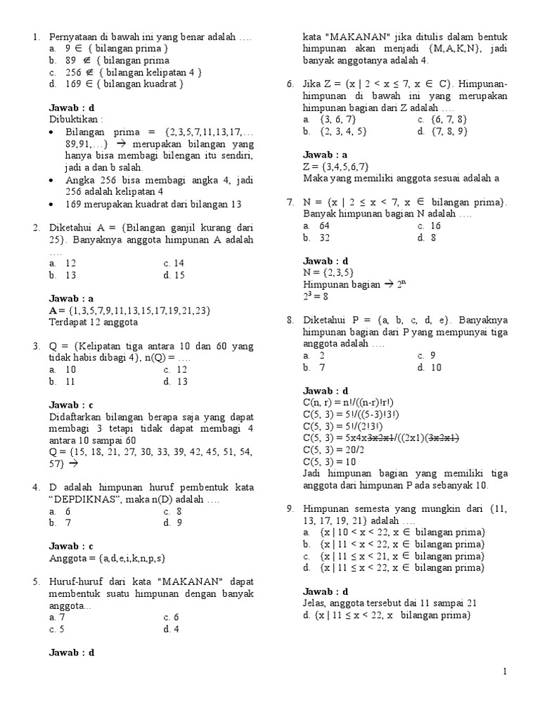 Himpunan Doc Pilihlah Jawaban Yang Paling Tepat 1 Pernyataan Di Bawah Ini Yang Benar Adalah A 9 Cfw Bilangan Prima C 89 Cfw Bilangan Prima B 256 Cfw Course Hero