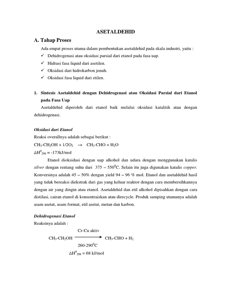 Pra Rencana Pabrik Pembuatan Asetaldehid Melalui Hidrogenasi Asam Asetat Kapasitas 36 000 Ton Tahun Sriwijaya University Repository