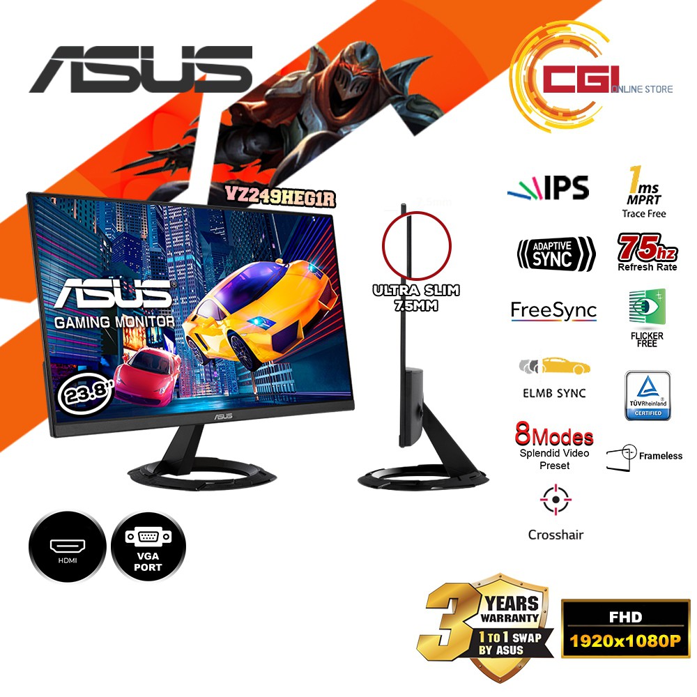 Asus Vz249heg1r 23 8inch Full Hd 1920 X 1080 Ips 75hz Extreme Low Motion Blur Freesync Gaming Monitor