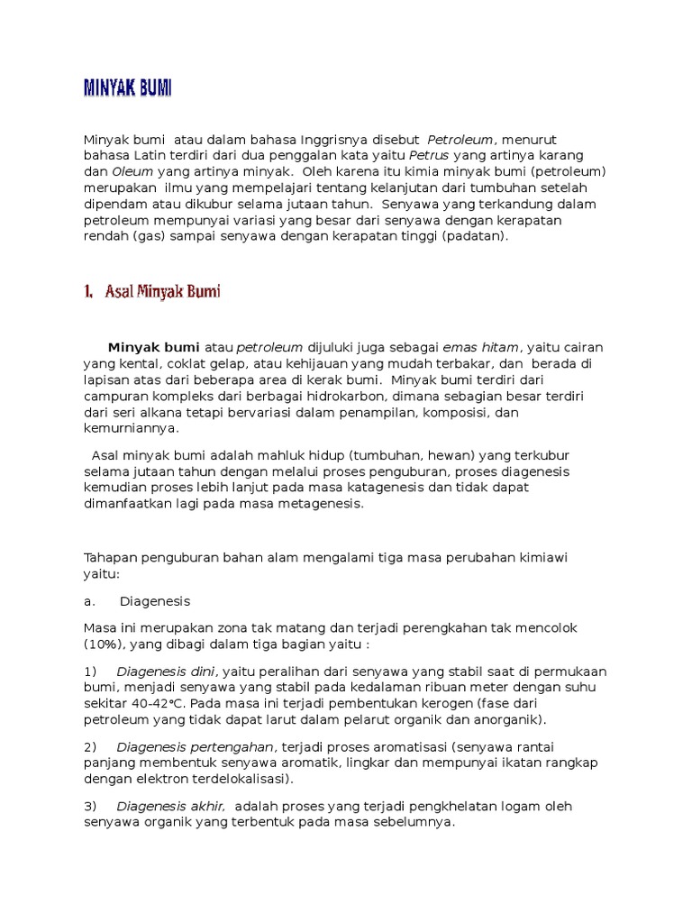 Background kimia tentang minyak bumi. Pembentukan minyak bumi dijelaskan berdasarkan teori anorganik dan teori organik. Dan berbagai reagen kimia yang dibutuhkan untuk pembuatan plastik karet sintetis deterjen obat obatan dan lainnya dihasilkan dari minyak bumi. Minyak bumi merupakan salah satu bahan kimia yang digunakan manusia untuk memenuhi kebutuhan hidupnyaoleh karena itusaya berharap makalah ini dapat membimbing dan menuntun kita untuk memahami tentang segala sesuatu yang berkaitan dengan minyak bumi tersebut.