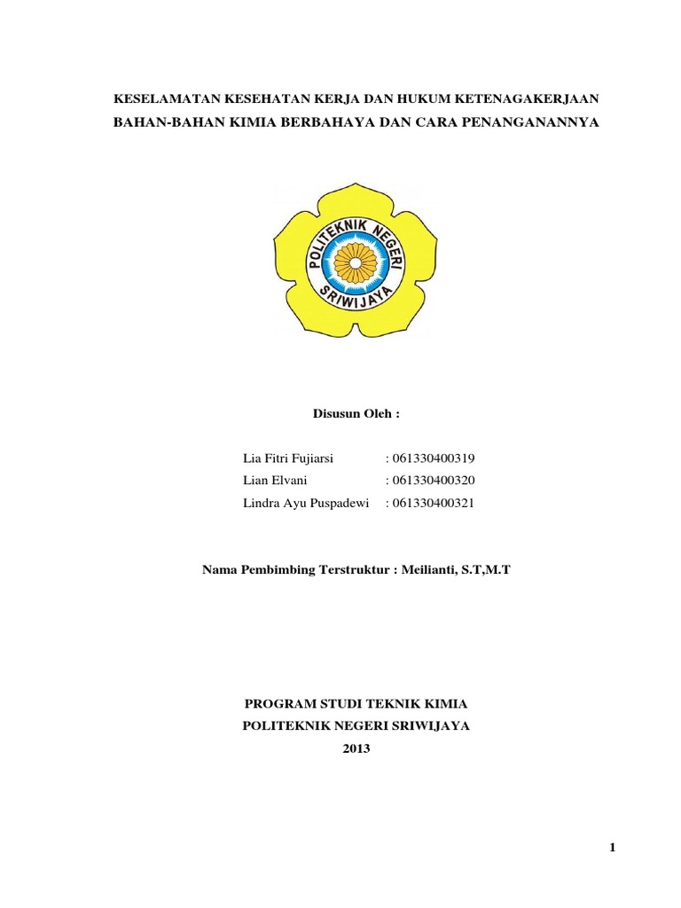Bahan Kimia Berbahaya Dan Keselamatan Kesehatan Kerja Bidang Rahmad Ali Academia Edu