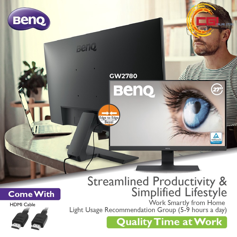 Complementing benq exclusive eye care technology with low blue light and flicker free performance for extended viewing comfort industry leading brightness intelligence technology delivers exquisite details in any ambient lighting environment. Designed for simplicity benq gw2780 27 inch frameless monitor combines ultra slim bezels with hidden cable management. Whats more it has a super precise on.