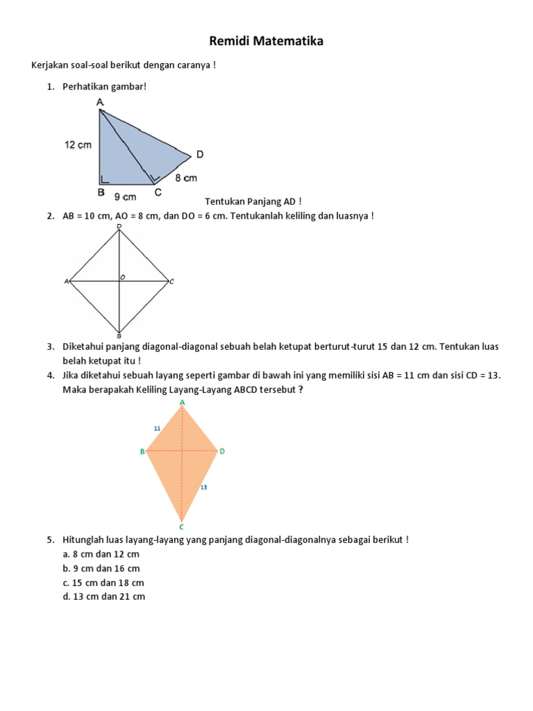 Tlong Ya Panjang Salah Satu Diagonal Belah Ketupat 12 Cm Jika Keliling Nya 40 Cm Brapa Luas Blah Brainly Co Id