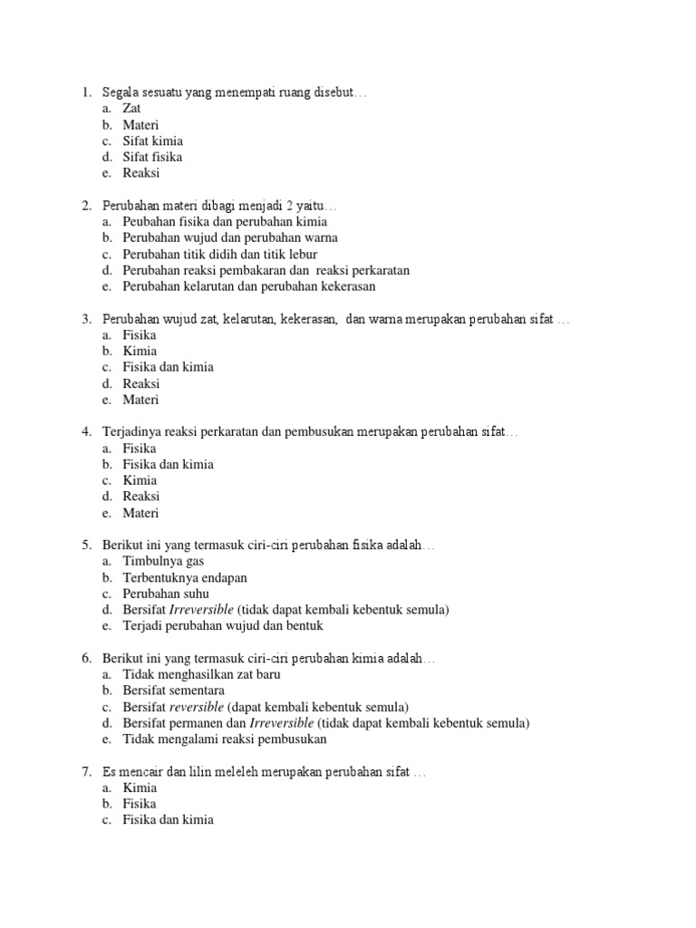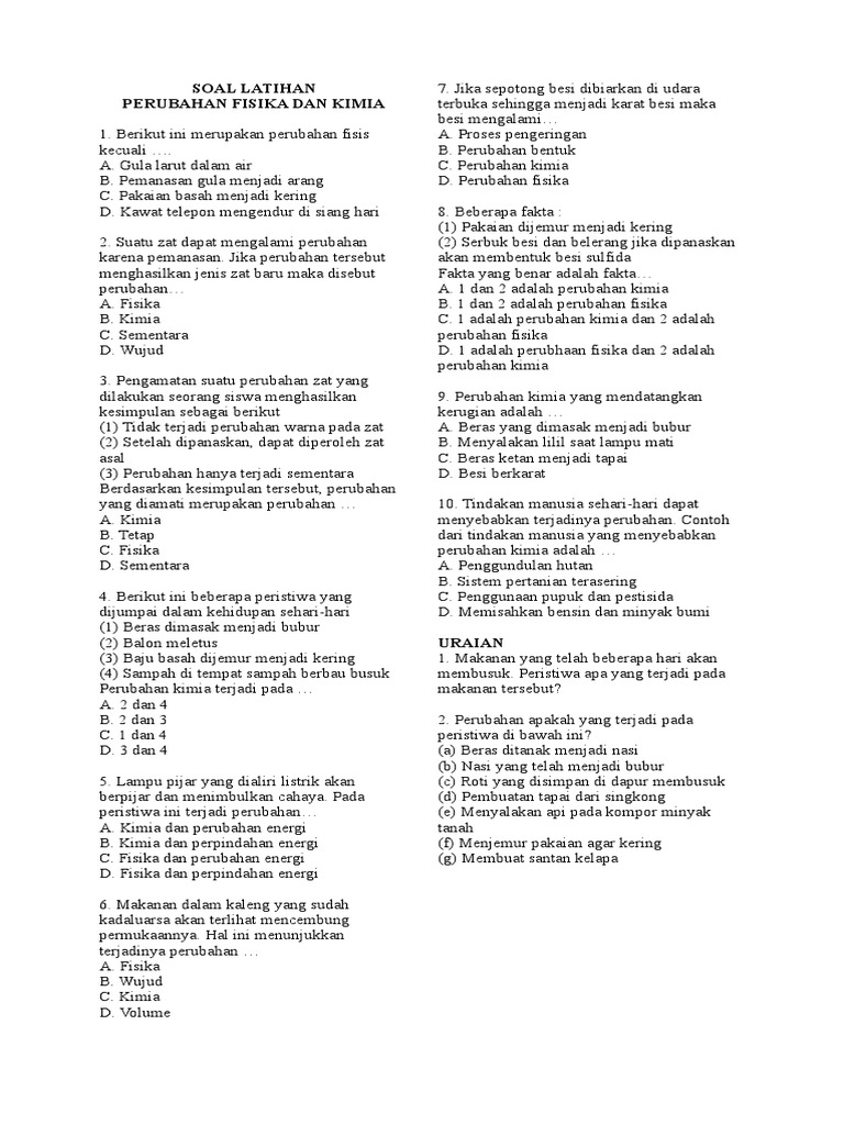 Soal Perubahan Fisika Dan Kimia Guru Galeri
