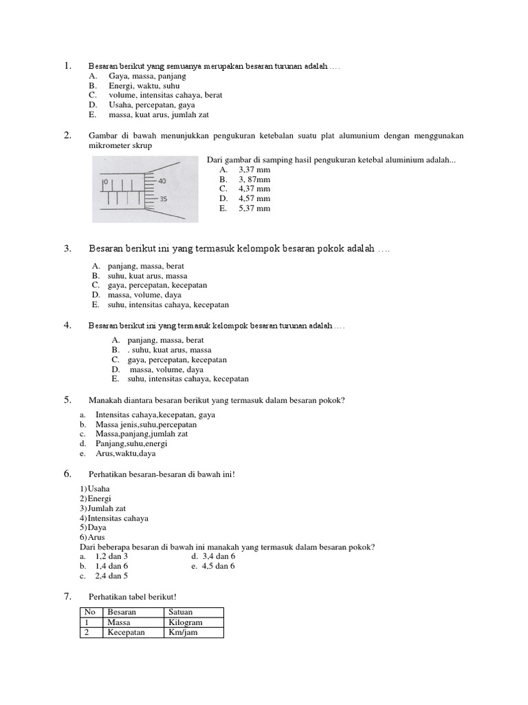 Kelompok Besaran Berikut Yang Terdiri Dari 3 Besaran Pokok Dan 2 Besaran Turunan Adalah Brainly Co Id