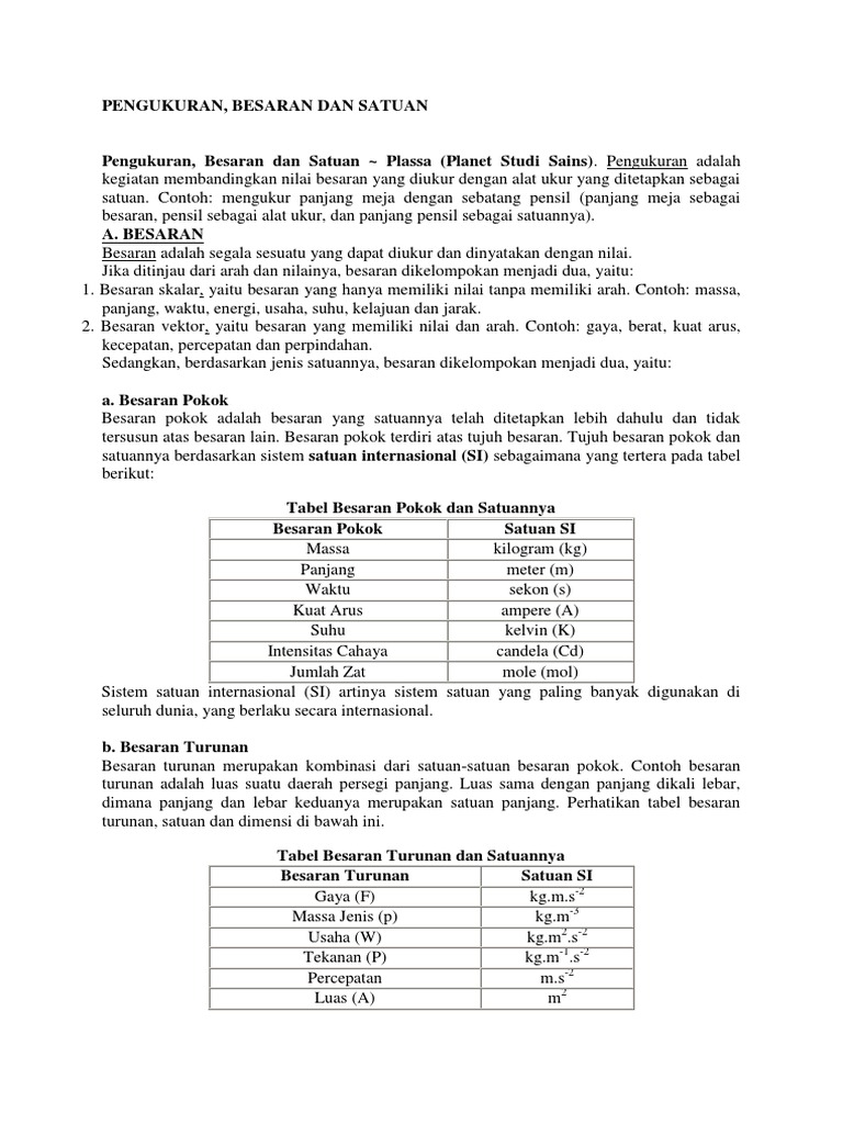 Besaran Pokok Dan Turunan Beserta Satuan Dan Dimensinya Myrightspot Com