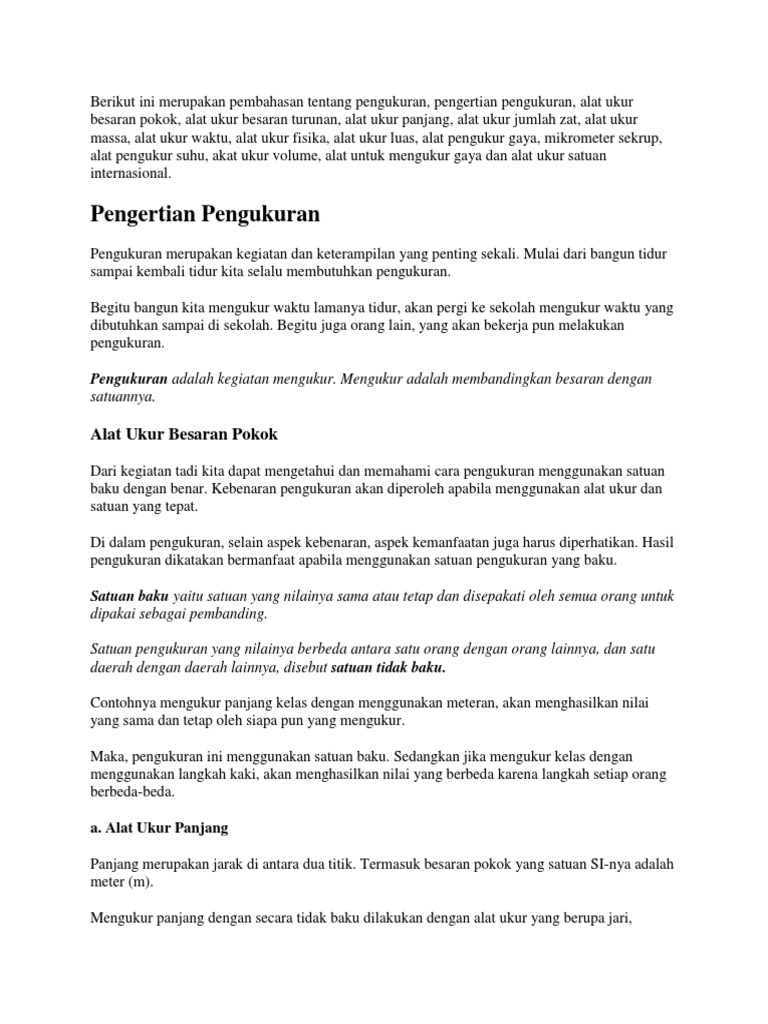 Doc Oal Soal Pengukuran Besaran Dan Satuan Plus Kunci Jawaban Chul Reffaydệrs Academia Edu