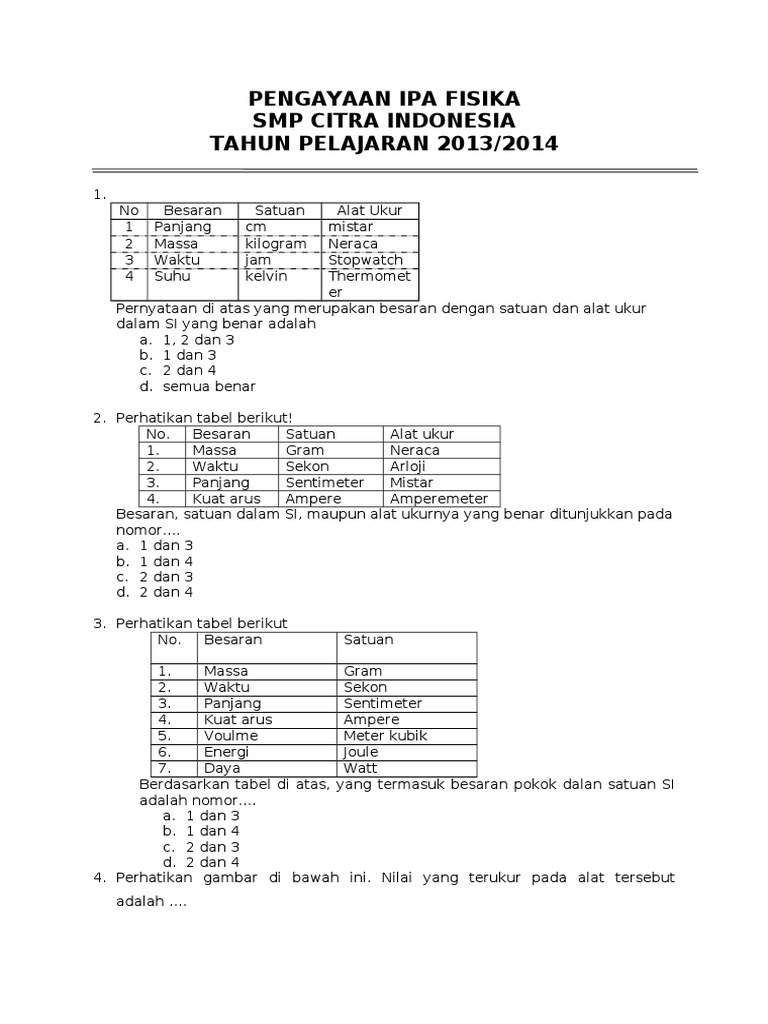 Doc Oal Soal Pengukuran Besaran Dan Satuan Plus Kunci Jawaban Chul Reffaydệrs Academia Edu