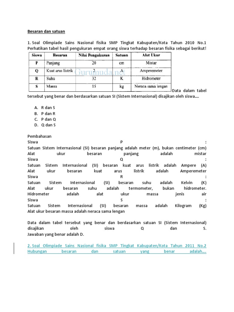 Besaran Pokok Besaran Turunan Satuan Internasional Soal Dan Jawaban Un 2013 Gurumuda Net