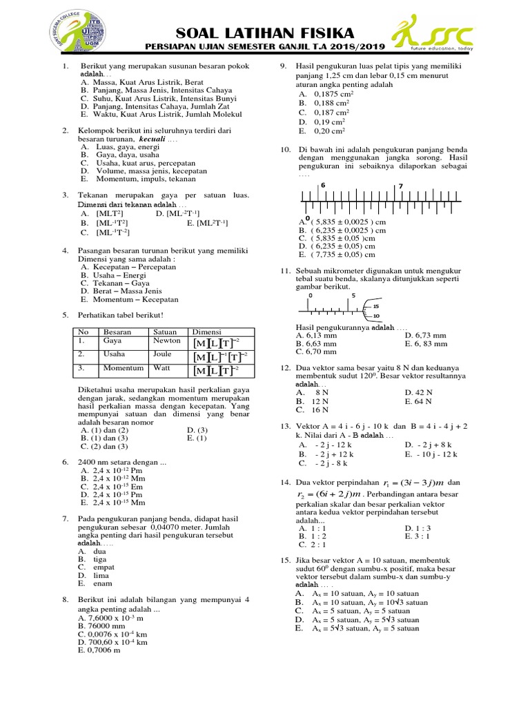 Soal Uas Fisika Kelas X Dan Kunci Jawaban Febriman Zendrato