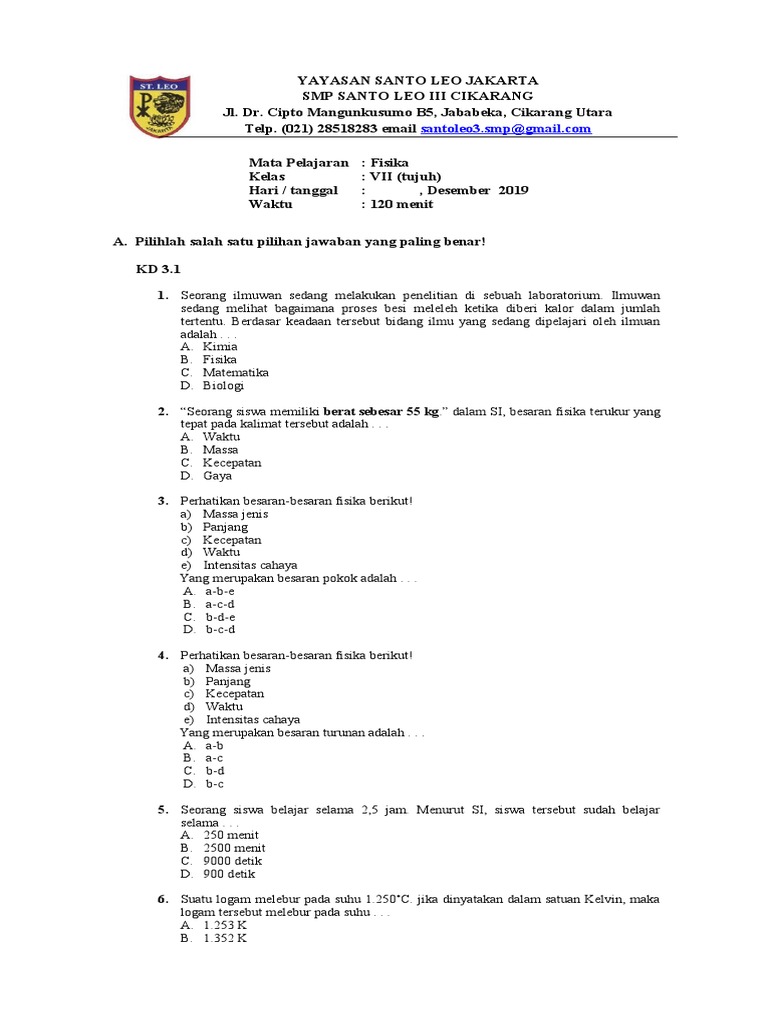 Paket 3 31 Doc Paket 3 Contoh Soal Dan Pembahasaan Ipa Smp Soal No 1 Kemampuan Yang Diuji Menentukan Besaran Fisika Dan Satuan Yang Sesuai Indikator Course Hero