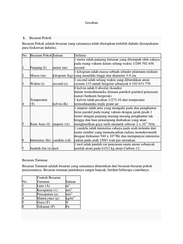 1 Besaran Dibedakan Menjadi 2 Besaran Besaran Pokok Dan Besaran Turunan Sebutkan Dan Brainly Co Id