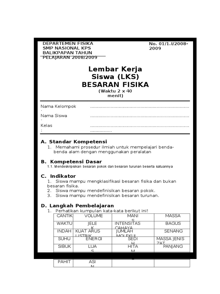 Pak Ali Docx Soal 1 Di Bawah Ini Yang Merupakan Besaran Turunan Adalah U2026 A Waktu Momentum Panjang B Momentum Gaya Kecepatan C Panjang Massa Waktu D Course Hero