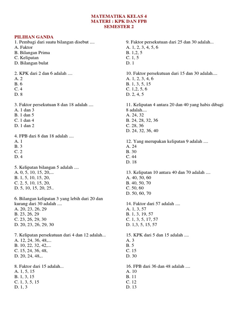 2 Kelipatan Dan Faktor Suatu Bilangan Pdf Document