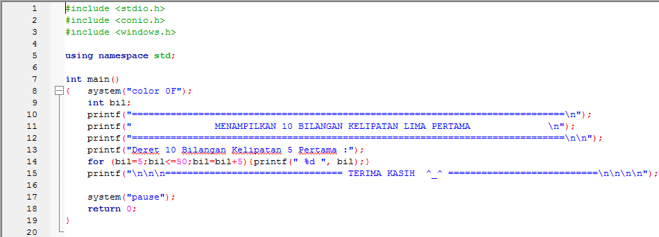 Coding C Membuat Menampilka Mencetak Deret Kelipatan 5 Yang Tidak Melebihi Nilain N Yang Di Inputkan