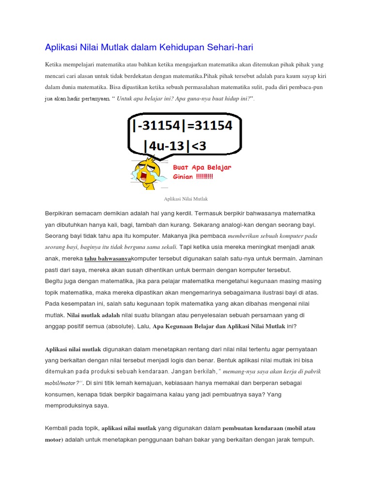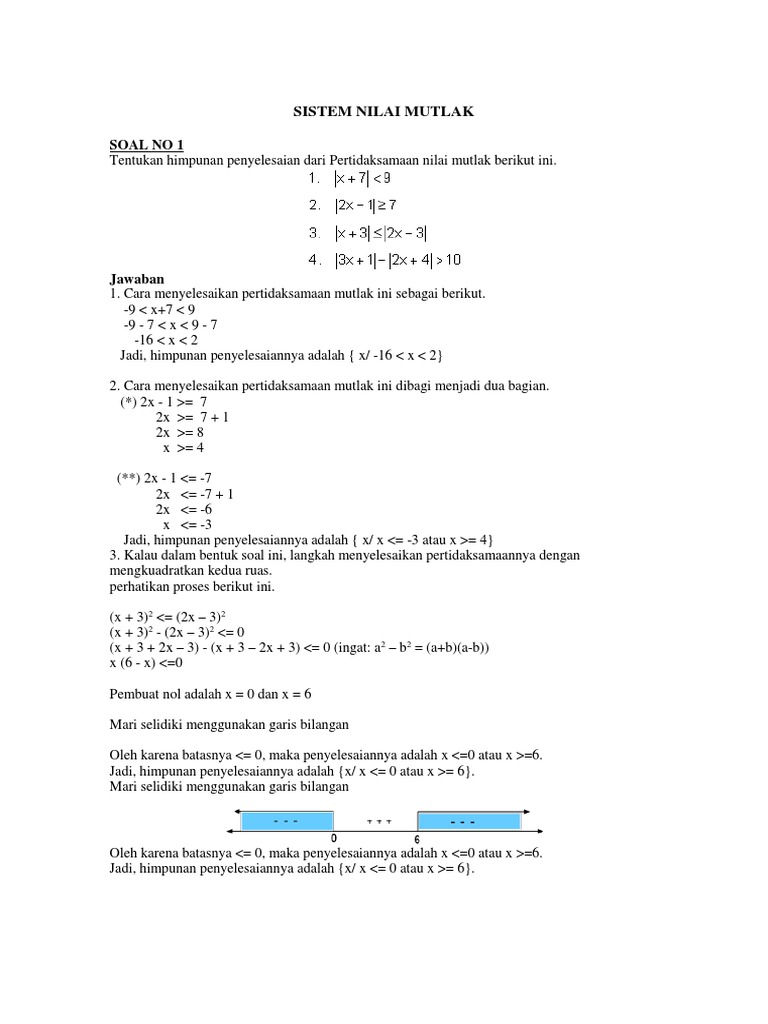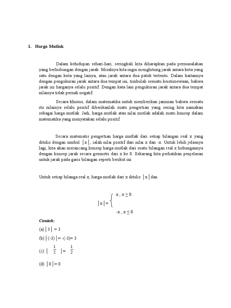 Nilai Mutlak Persamaan Dan Pertidaksamaan Nilai Mutlak