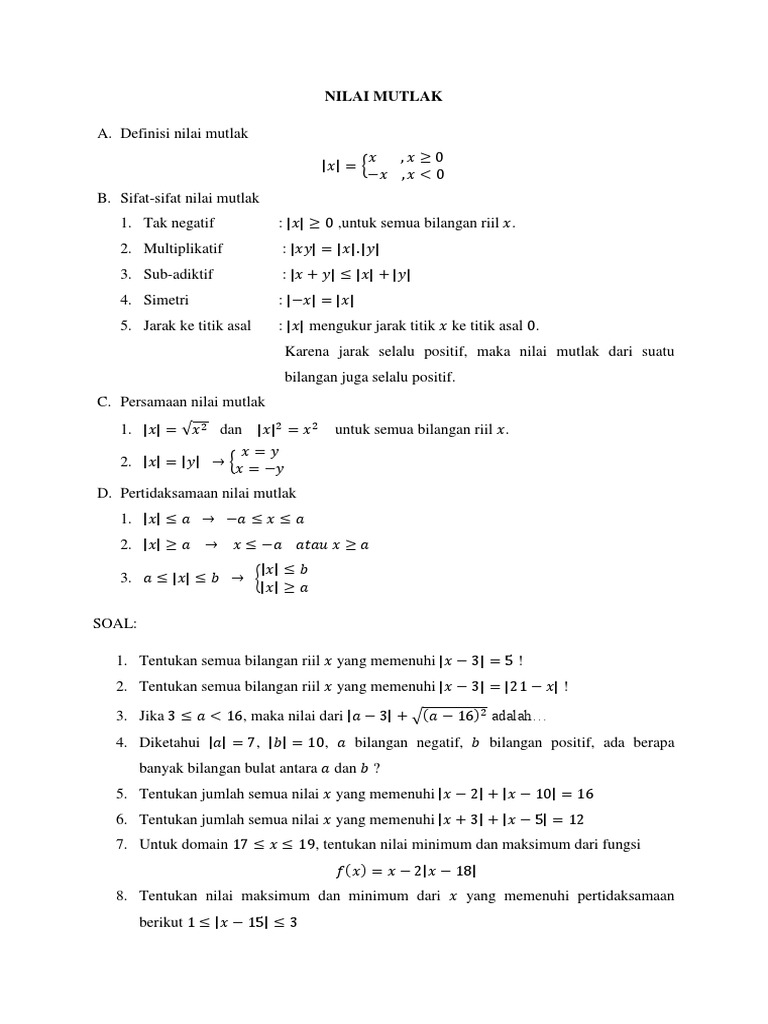 Persamaan Nilai Mutlak Penjelasan Lengkap Dan Contoh Soal