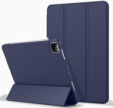 Amazon Com Buhore Tablet Case For Apple Ipad Pro 11 Inch 2018 3rd Gen Soft Tpu Back Cover With Apple Pencil Holder Trifold Magnetic Smart Cover Stand Navy Blue Computers Accessories