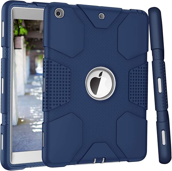 Amazon Com Hocase Ipad 5th 6th Generation Case Ipad 9 7 2017 2018 Case Shockproof Heavy Duty Soft Rubber Bumper Hard Plastic Hybrid Protective Case For Ipad A1822 A1823 A1893 A1954 Navy Blue Gray