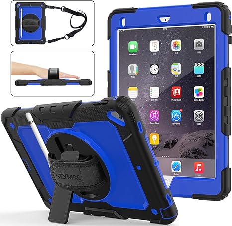 Amazon Com Seymac Stock Ipad 6th 5th Generation Case Shockproof Full Body Armor Case With 360 Rotating Stand Pencil Holder Screen Protector Hand Strap For Ipad 6th 5th Air 2 Pro 9 7 Blue Black Computers Accessories