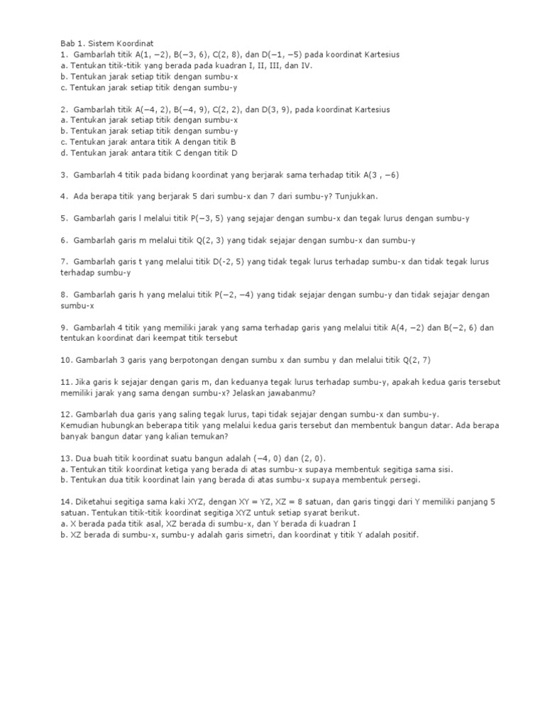 Soal Dan Pembahasan Uji Kompetensi 1 Matematika Kelas 8 Bab 1 Sistem Koordinat K13 Kedai Mipa