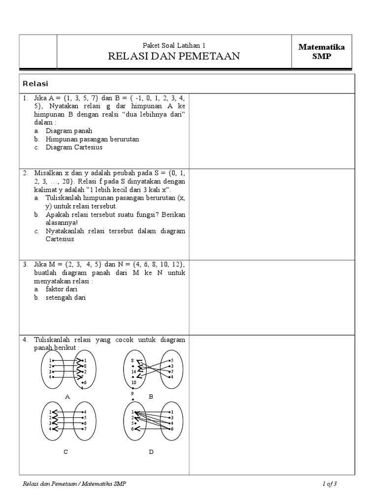 Ayo Kita Berlatih 3 Viii Smp Palangkaraya Dengan Ukuran Sepatunya B Gambarlah Relasi Tersebut Dengan Pdf Document