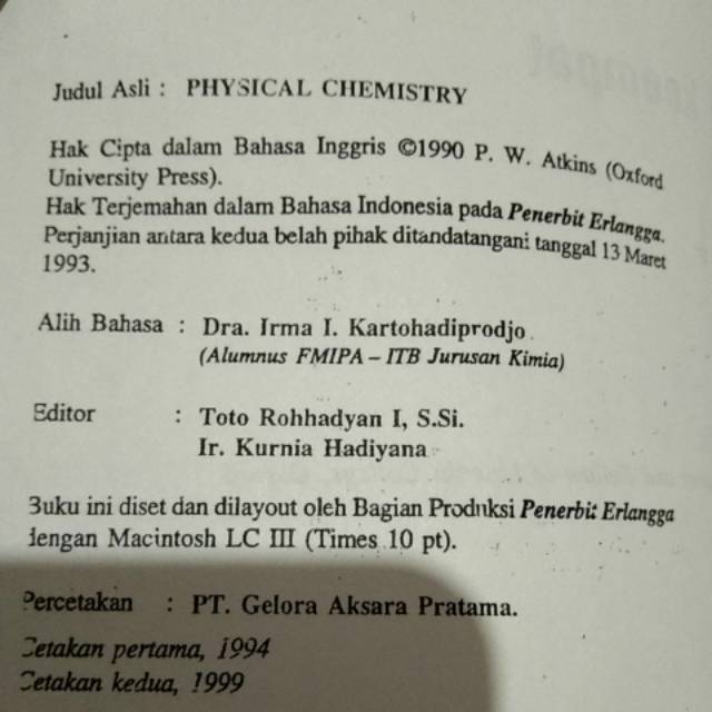 Jual Kimia Fisika Edisi 4 Jilid 2 Oleh P W Atkins Di Lapak Quality Bookstore Muhammad Fathi Muwahhid