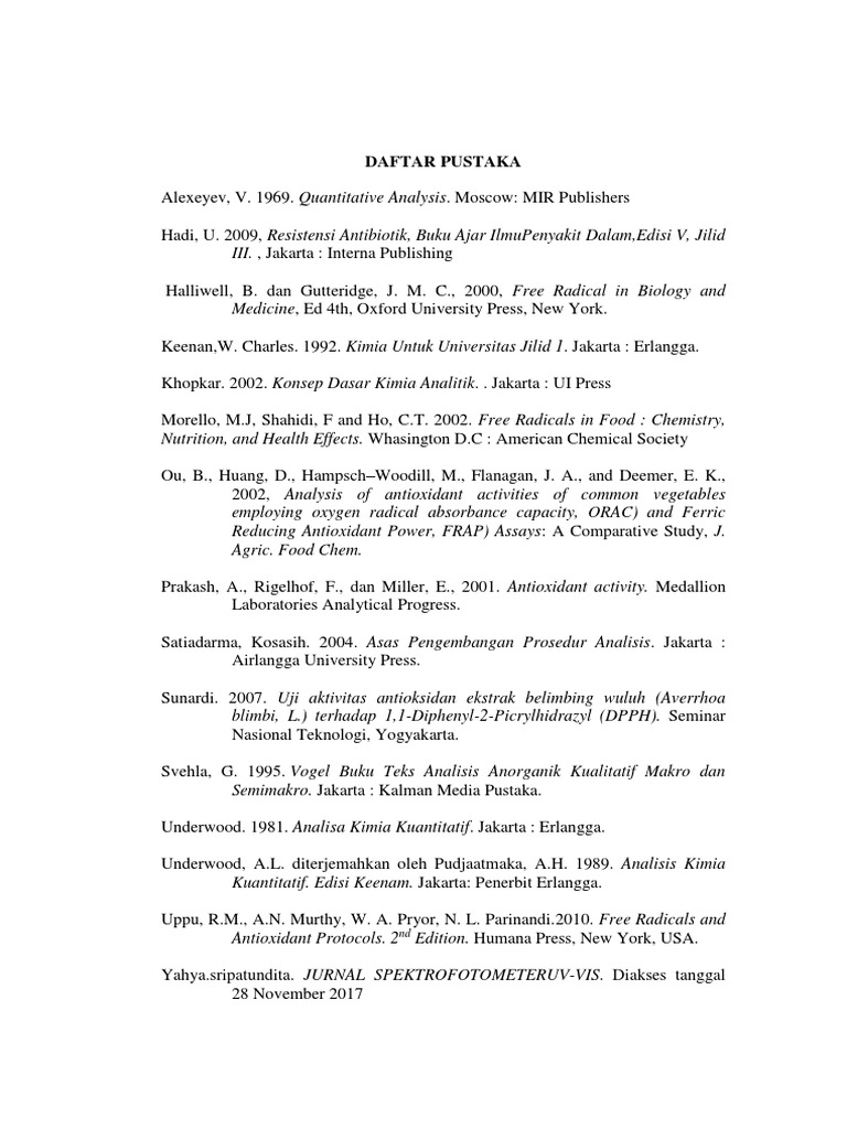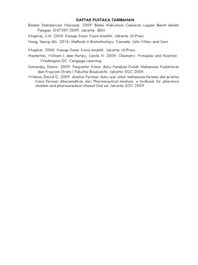 Doc Daftar Pustaka 2 Uji Klorin Pada Sampel Beras Yang Terdapat Di Pasar Merjosari Malang Dengan Metode Spektrofotometri Puspa Callista Academia Edu