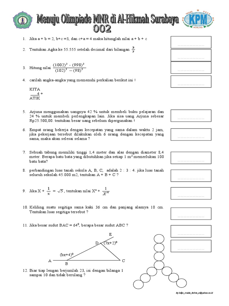 Doc Berikut Kami Umumkan Teknis Pelaksanaan Kompetisi Matematika Nalaria Realistik Se Indonesia Ke 10 Tahun 2015 Suriyadi Yadi Academia Edu