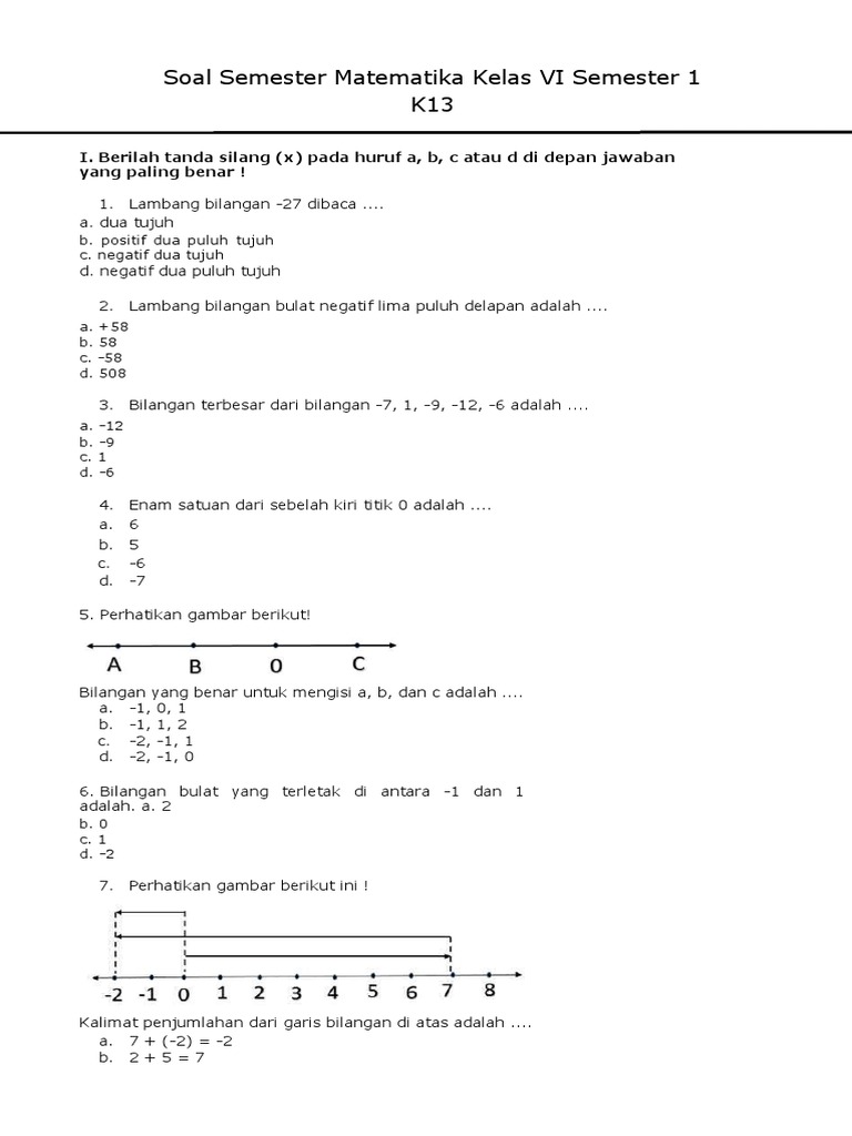 Contoh Soal Operasi Bilangan Bulat Kelas 7 Contoh Soal M R S Kimia