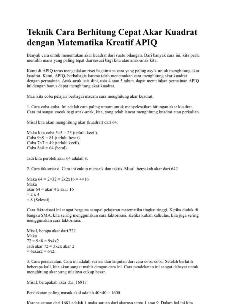 Mencari Akar Pangkat Dua Sebuah Bilangan Dengan Mudah Hasbullah Jaini Blog