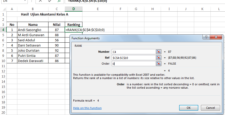 Badruzeus Shava Teknologi Informasi Komunikasi Cara Mudah Menentukan Ranking Kelas Di Microsoft Excel